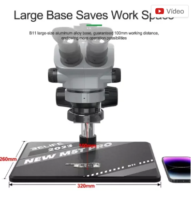 • Base de liga de alumínio de grande porte B11, garantindo a distância de trabalho de 100mm, proporcionando maior operação possível.